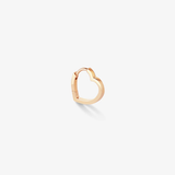 An unexpected large hoop earring showcasing the heart motif in an audacious way.