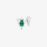 The ultimate composition in white gold of a pear-shape emerald and two pear-shape diamonds adorning the ear
